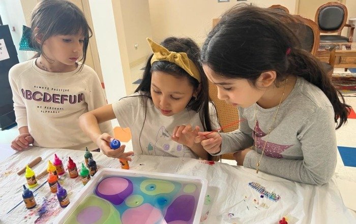 As a weekend school in Arkansas, we do different activities every day with our children. By teaching the art of marbling to our children, we both keep our culture alive and try to develop the